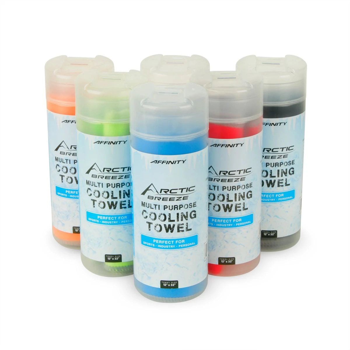 Stay cool in all sports with the Affinity Arctic Breeze Cooling Towel. Perfect for the gym, for golfers, while hiking, camping, athletes and folks of all ages and genders! Simply soak the towel in cold water, wring it and its ready to drape around your neck. It provides hours of cooling relief. If it starts to get warmer, simply rinse and repeat or you can put it in the refrigerator overnight for maximum coolness! It is machine washable; dries soft even after several washes. The Affinity Arctic Breeze Cooling Towel is super absorbent and maintains maximum water retention to ensure you stay cool even in the most intense heat. The Affinity Arctic Breeze Cooling Towel is oversized for maximum cooling capacity and measures 12″ x 33″ plus is available in a variety of colors.