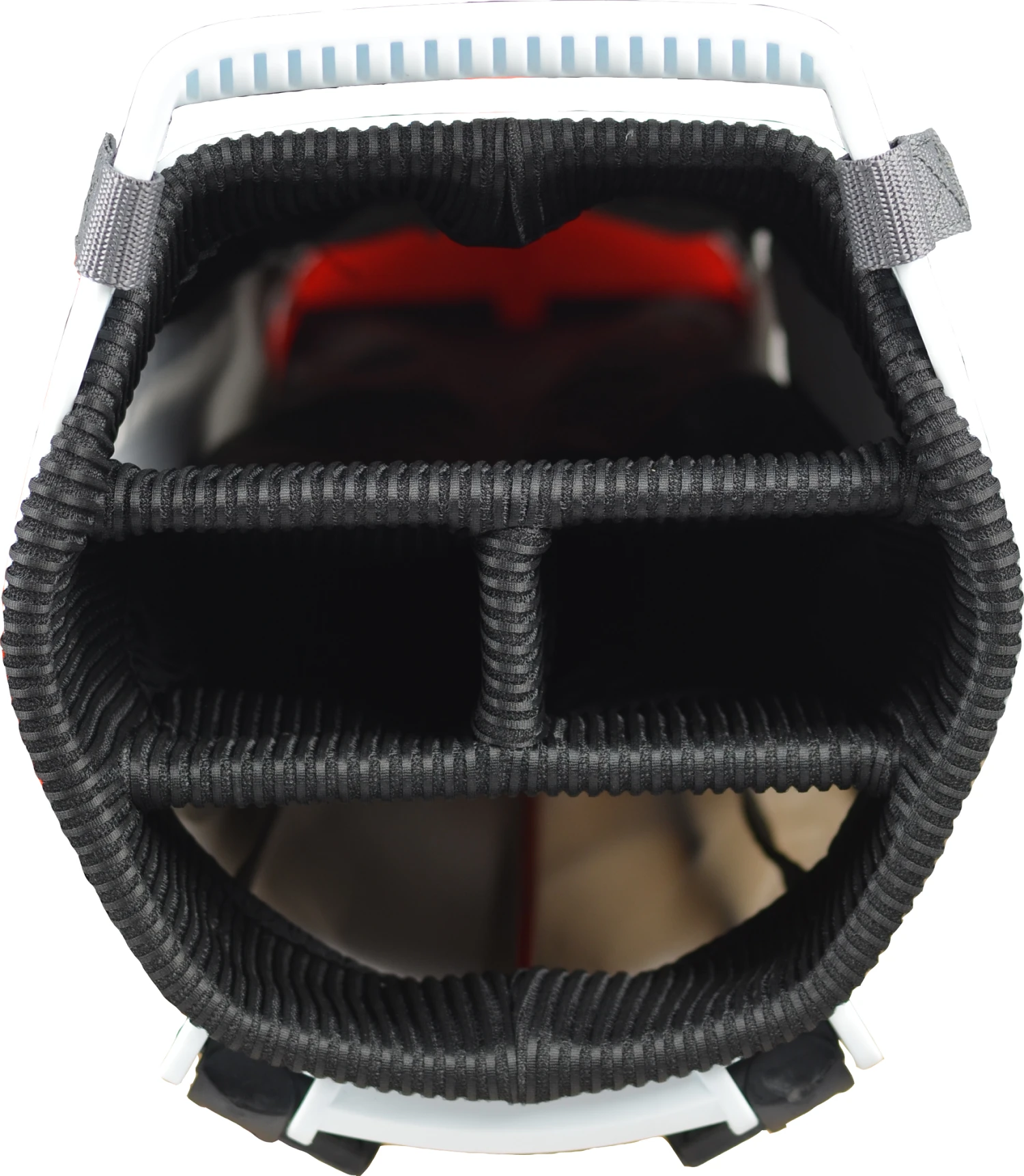 The 3.5LS is designed for the golfer who loves our popular 2.5+ but wants a few more features. Like the 2.5+, the 3.5LS is constructed with lightweight nylon fabric, high-strength-to-weight plastic, and carbon fiber legs. Adding a pound allowed us to use a thicker strap, a more cushioned hip pad and to provide several more pockets. For 2021, the 3.5LS has a new top, updated body styling and an additional pouch pocket.